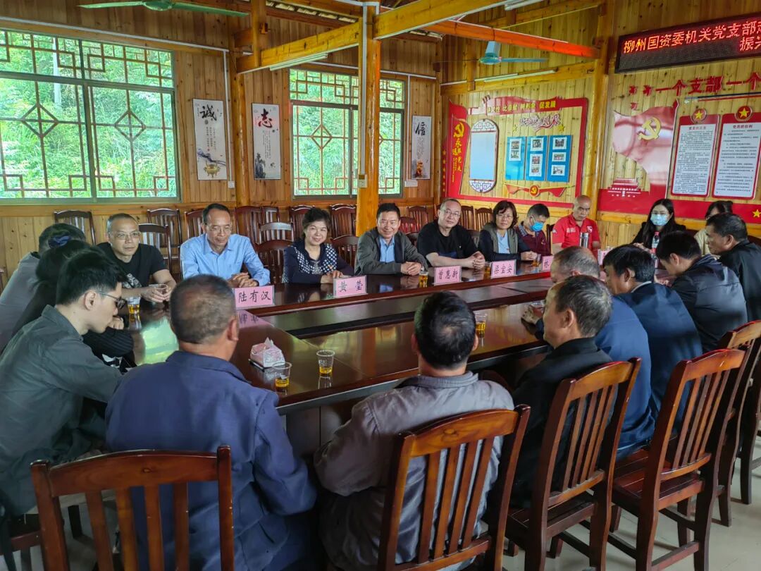 首先,一行人在村委会召开座谈会,共同研讨乡村振兴工作,才妙村监委主任覃忠义、才妙村党员代表参加座谈会。会上,才妙村党员代表向市国资委的各位同志介绍了才妙村近期的发展变化与感触,并对市国资委的支持与帮助表达了深深的感谢。近几年来,市国资委派驻才妙村的工作队通过党建引领,带动才妙村党员及村民共建美丽家园,例如在基础建设方面,发动村民、乡贤自筹资金,自主投工投劳建设百合屯休闲小广场、拉龙屯寨门、汽车营地简易滚水坝等,在提升人居环境方面,号召村民美化自家庭院,建设“微菜园、微田园、微果园”,带领村民改善屯内人居环境等,为助力才妙村产业振兴,开展困难家庭的融安金桔云认养活动等等。会上,党员代表们还提出目前乡村振兴进程中尚存在困难和需求,市国资委曾惠新表示,市国资委作为后盾单位,将持续发挥后盾作用,做好巩固拓展脱贫攻坚成果同乡村振兴有效衔接工作。