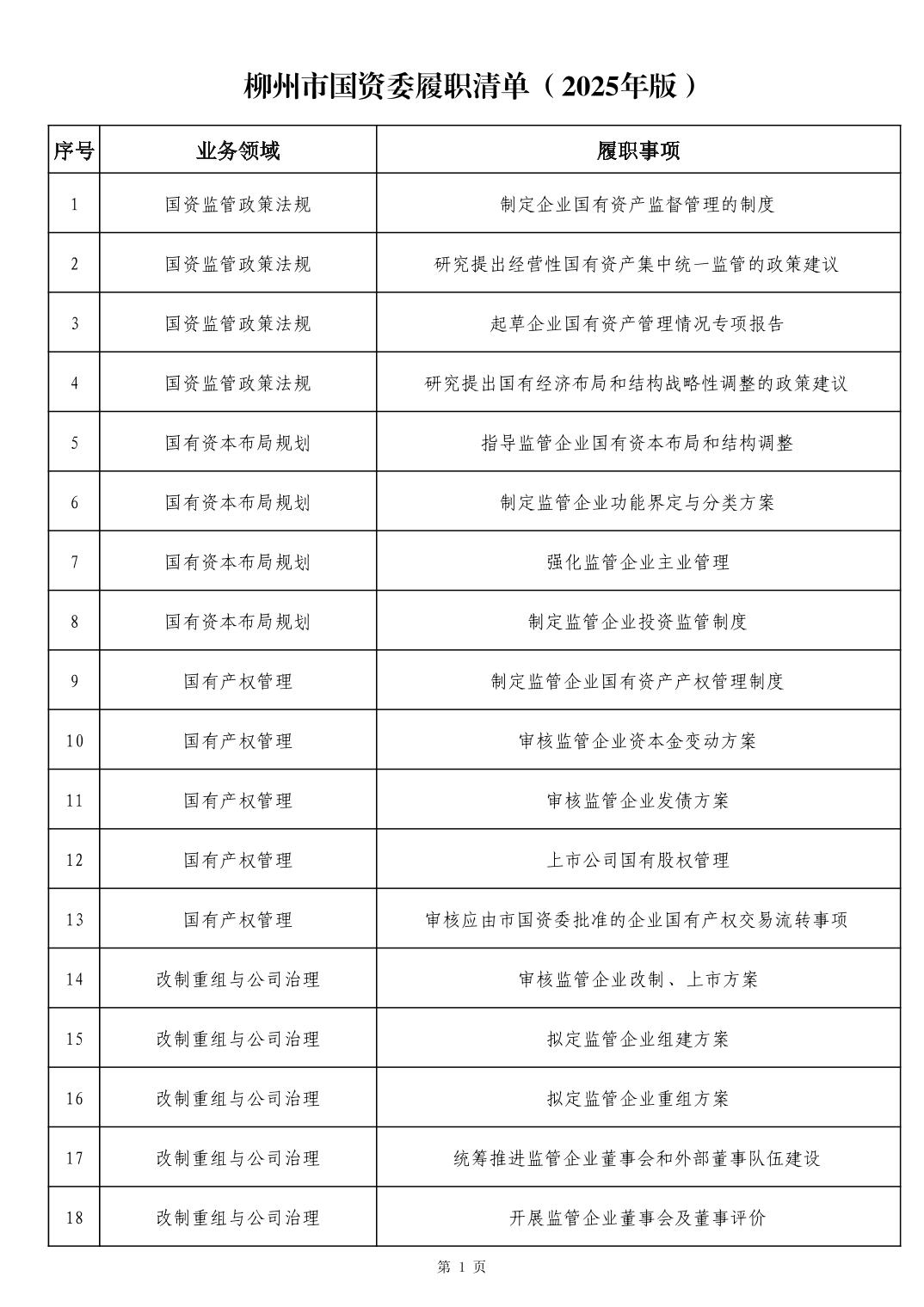 柳州市国资委履职清单(2025年版)